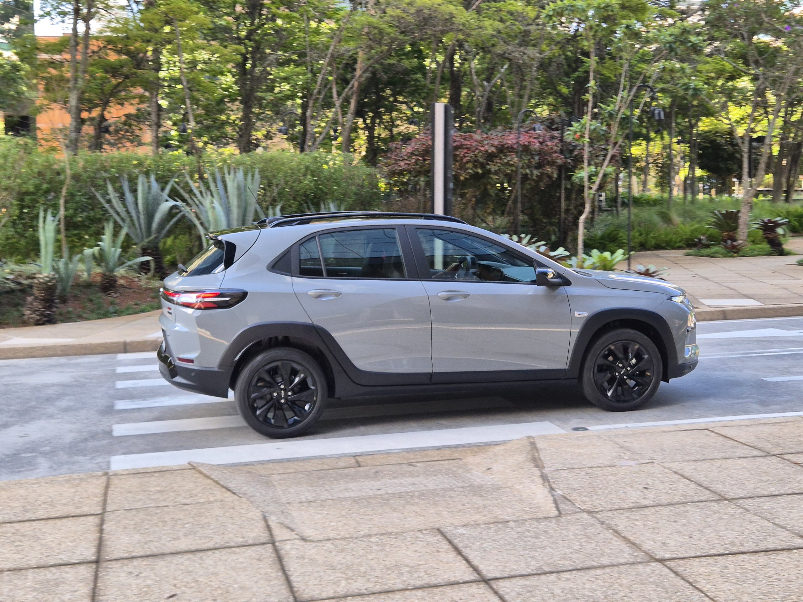 O visual é um dos pontos fortes do veículo. O desenho da parte dianteira foi inspirado em modelos mais caros da GM, a exemplo do Equinox. Só que com uma dimensão de carroceria mais reduzida, claro. A frente é futurista com faróis estreitos e uma grade bem fina, estilo Montana e Spin. Na traseira, uma lanterna que vai de ponta a ponta, estilo Volkswagen Nivus.