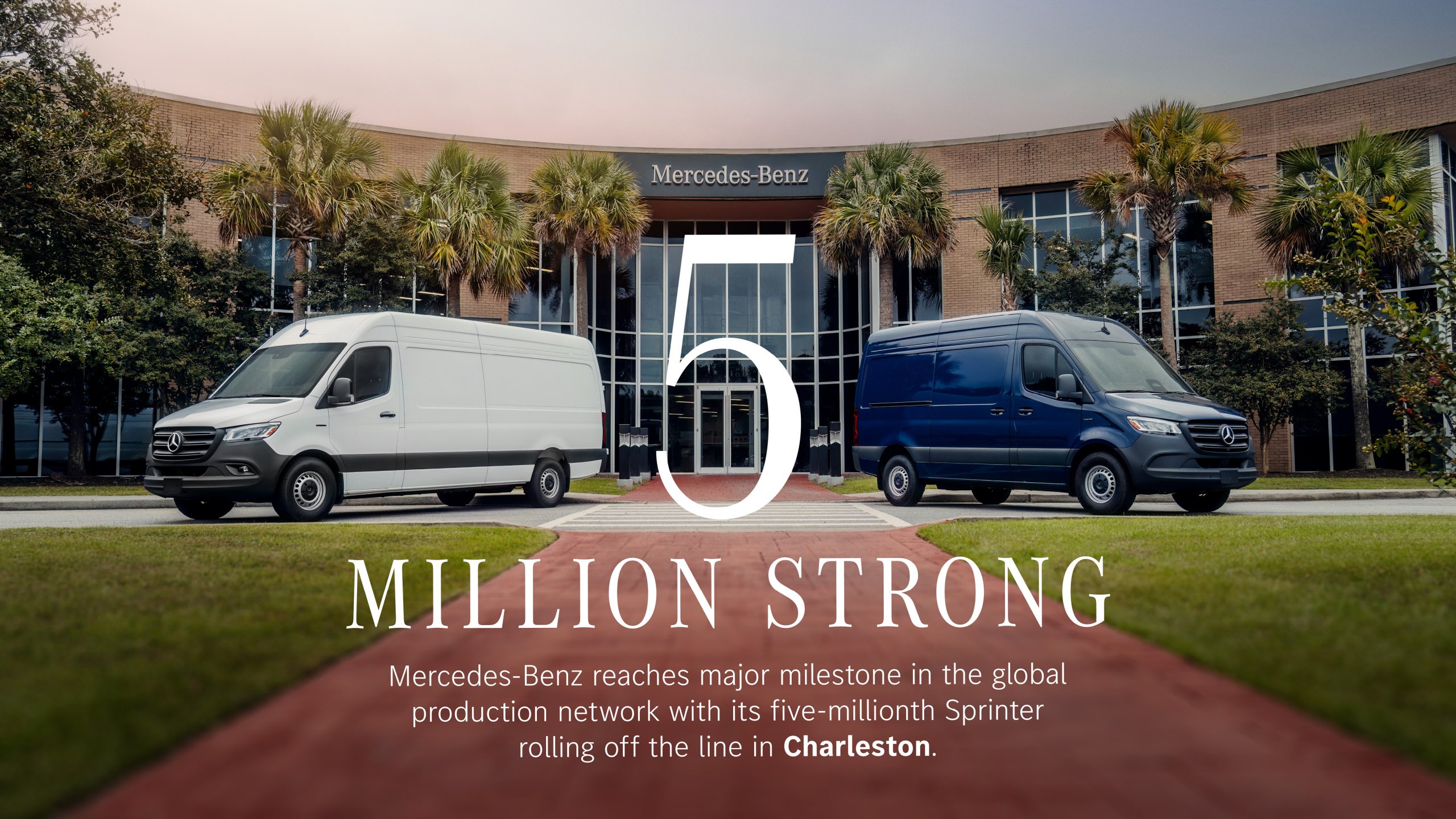 Produzido na unidade da empresa em Charleston, na Carolina do Sul, o veículo de número cinco milhões é uma eSprinter totalmente elétrica e foi entregue à FedEx, cliente de longa data da marca.