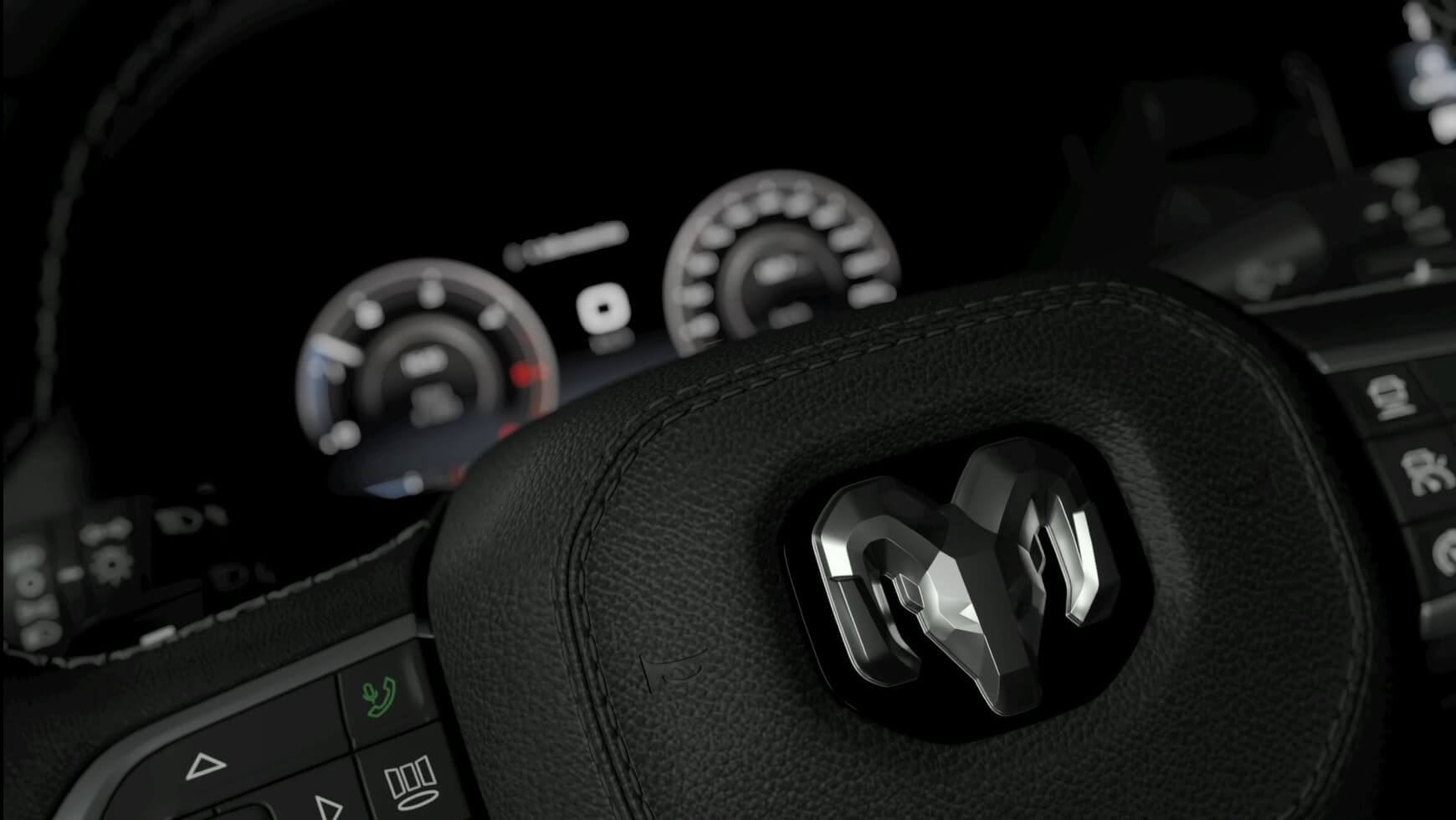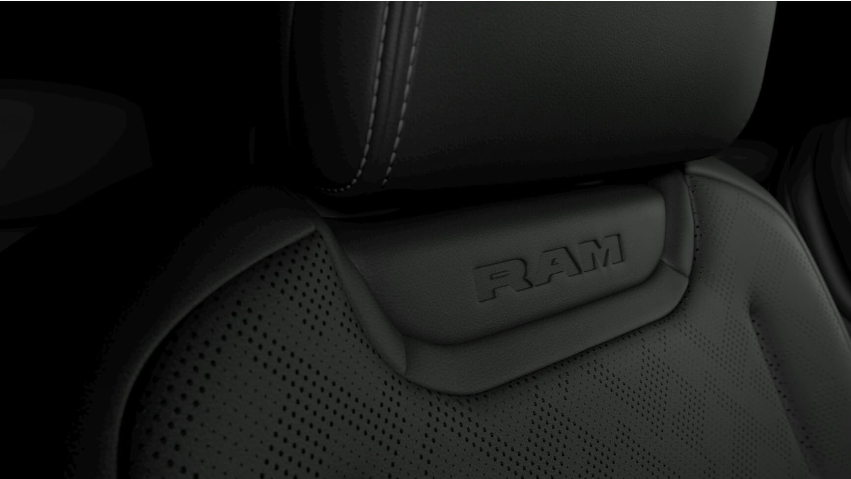 Nos bancos o nome Ram grafado, materiais nobres como o suede, além da plataforma de conectividade Ram Connect.