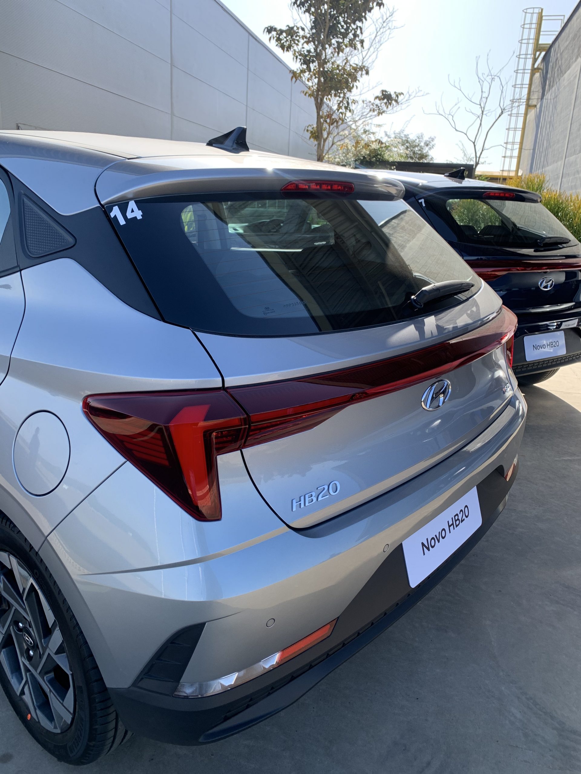 Testamos a versão top de linha, com rodas aro 16. O carro traz como detalhe a antena do tipo barbatana de tubarão, presente em marcas de luxo como a BMW. A lista inclui Ar-condicionado automático digital e até dispositivo que permite ligar o carro à distância. O HB tem carregador de celular sem fio, central multimídia com câmera de ré e painel todo digital, para dar maior refino ao Hyundai.